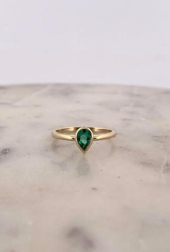 Emerald Pear Bezel Ring